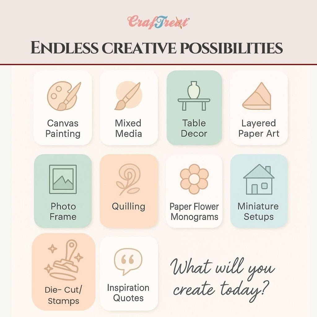 Frames White – Assorted Shapes 6pcs. 6 Pre-cut bases for making Frames – Square, Rectangle, Hexagon. 2 Each Finished Size: Square - Outer 5" | Inner 4" | Depth 0.5" Rectangle - Outer 4x5” | Inner 3x4" | Depth 0.5" Hexagon - Outer 5.25" | Inner 4.25" | Depth 0.5" These precision-cut bases are designed for both function and creativity. They’re simple to assemble and ideal for • Canvas Painting • Mixed media • Table Décor • Layered Paper Art • Photo Frame • Quilling • Monograms • Miniature Set ups • Paper/Dried Flower Displays • Inspiration Quotes/ Stencils • Die cuts / Stamped images