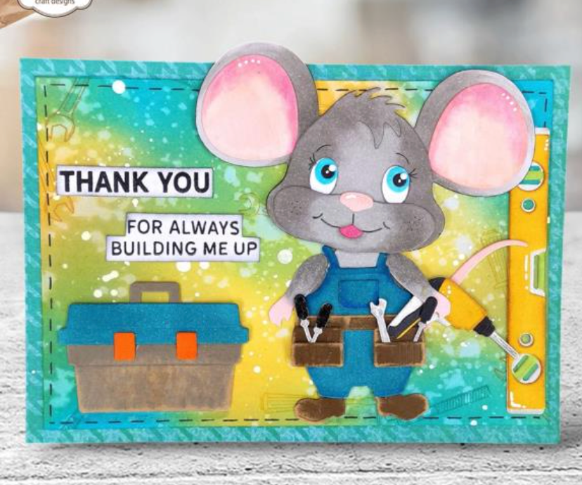 The Construction Accessories Die Set is part of the Living It Up Collection from Cute & Whimsical. Designed to work with the Big Mouse (2203) from the Meet the Mice Collection. The set includes a ladder, tools, and a complete construction outfit. Perfect for creating fun, masculine cards and construction-themed scenes with your mice.23
