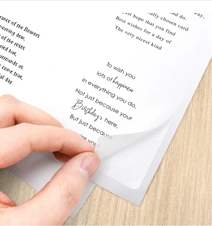 Peelables can be used on the front or inside of your project. The verses are suitable for occasions such as Birthdays, Celebrations, Weddings and much more.
