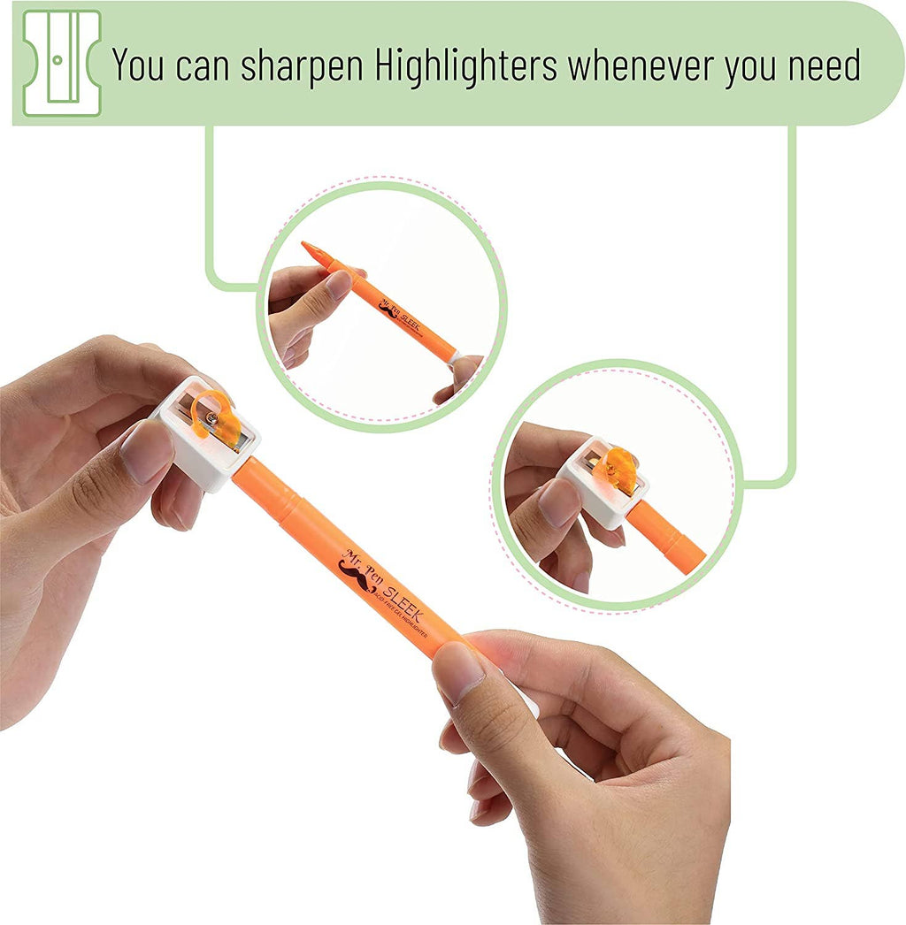 Bright, see-through colors make your highlighted text easy to read. You can sharpen highlighters for finer tips.