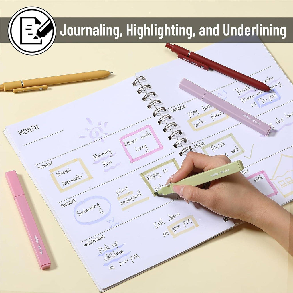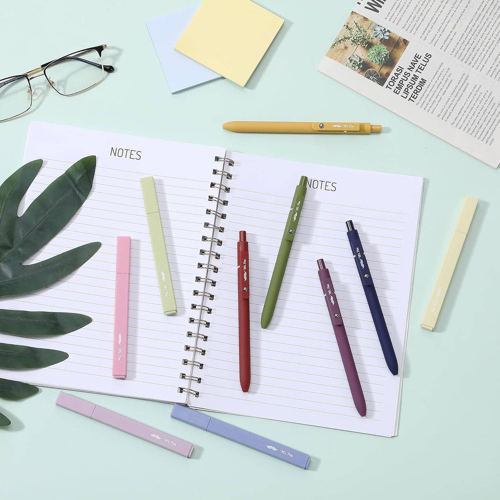 Package includes 5 highlighters in a delightful assortment of non-neon, soft, and mild colors and 5 retractable ballpens in black, offering a versatile and coordinated set for all your writing and highlighting needs.