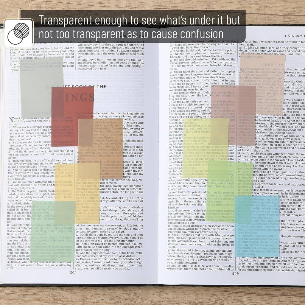 * The notes are crafted with transparent material, allowing you to see underlying text. This is ideal for highlighting or annotating documents without permanently altering them.