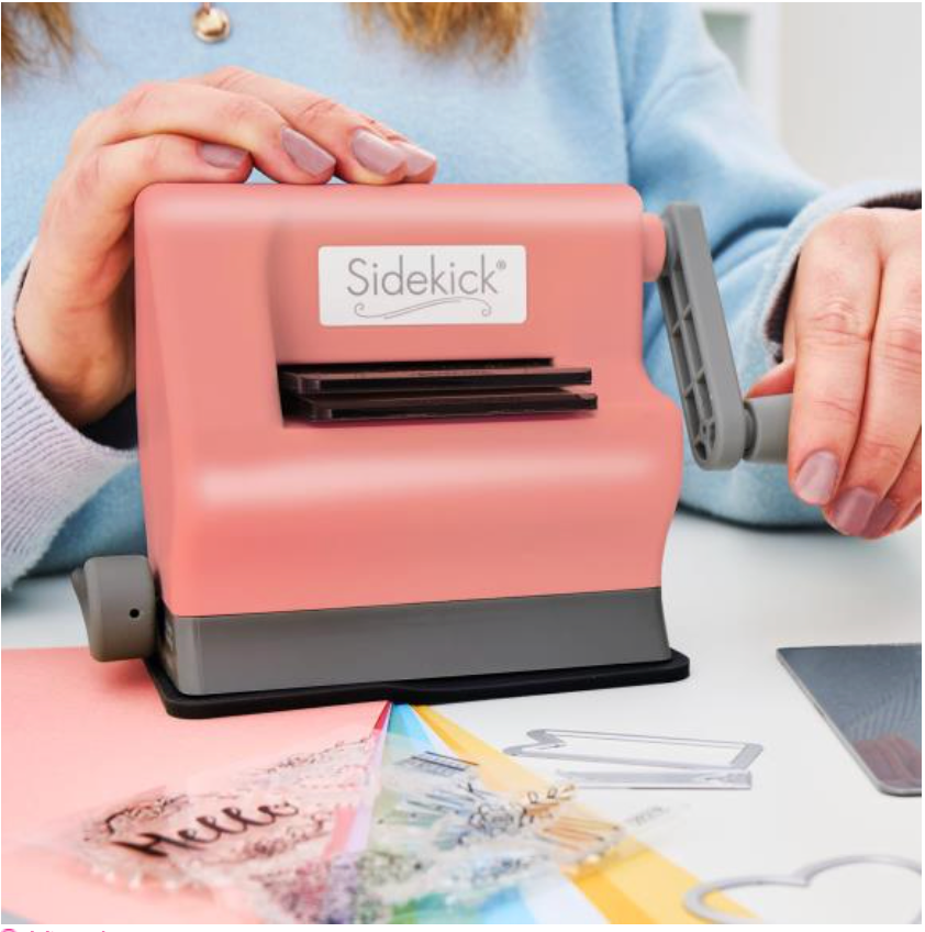- a portable, affordable and adorable crafting system designed for wafer-thin dies and embossing folders up to 2 1/2 inches wide. Now available as a limited edition in this trending 'Desert Sun' hue, this starter kit is the perfect partner for both beginners and seasoned makers looking for a compact machine to add to their crafting journey. The kit includes a selection of dies, embossing folders, and stamps so makers can create right out of the box. With birthday, thank you, heart and flower designs, there are many projects to make the endless personalized possibilities. The Sidekick will cut a single sheet of lightweight