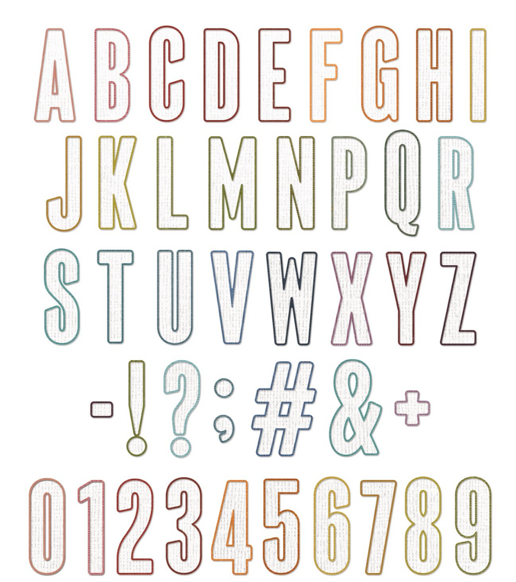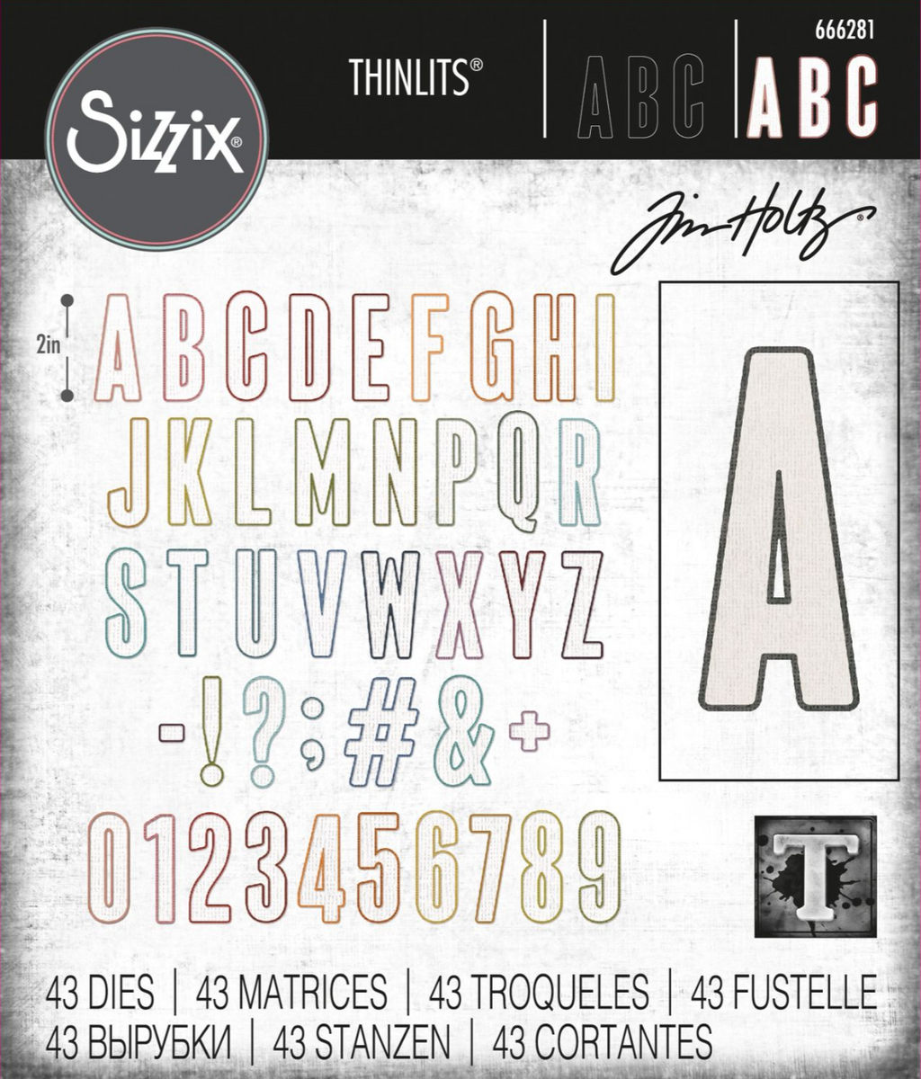 Dual-layered and 2 inch high, this Alphabet set by Tim Holtz makes every word a statement! Each of the 43 dies cuts an outline and an inner letter, to be used separately or together depending on the project. From innovative home decor pieces to bold birthday greetings, this Alphabet can do it all! Use this set with the Sizzix Adhesive Sheets (656802) for consistent and easy application.