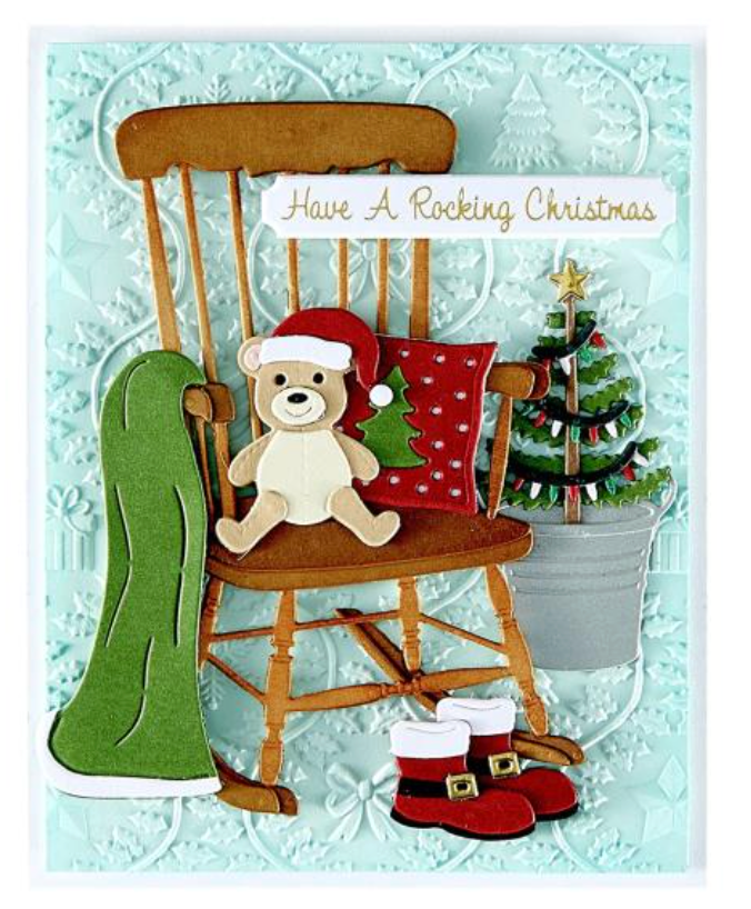 Christmas Rocking Chair Etched Dies are from the Country Christmas Collection by Annie Williams. Add a warm rocking chair to your project with this set of 26 thin metal cutting diesa perfect cozy vibe for any holiday creation. With many accessories, you can customize your look! Elements of a country style Christmas are curated in this Country Christmas Collection by Annie Williams. Give a cozy rustic vibe to your upcoming holiday projects! Approximate Size: Finished Rocking Chair: 2.95 x 4.50 in./7.50 x 11.40 cm Finished Teddy Bear: 1.15 x 1.55 in./2.90 x 3.90 cm Finished Tree in Container: 1.25 x 2.60 in./3.10 x 6.60 cm Finished Pillow: 1.20 x 1.15 in./3.00 x 2.90 cm Finished Blanket: 1.15 x 2.80 in./3.00 x 7.20 cm Finished Boot: 0.90 x 0.75 in./2.30 x 2.00 cm