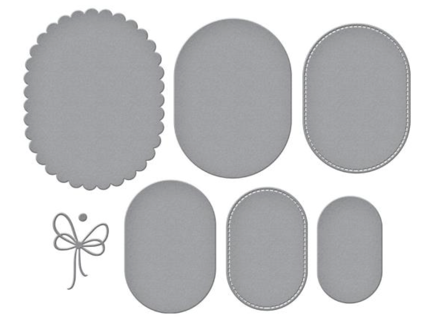 The set of seven thin metal cutting dies includes a large scalloped edge oval, two stitched edge ovals, standard ovals, and a sweet bow. Cut to anchor a design or nest some of the ovals to create frames. Accent any project with the bow in the set. Many design options with this set!Send warm expressions of good wishes and celebrations through this beautiful Wildflowers Collection by Lisa Horton. This second collaboration with Spellbinders brings lovely florals, thoughtful sentiments and wonderful backgrounds to make heartfelt creations! Approximate Size:Scallop Oval 1: 3.75 x 4.85 in. Oval 2: 3.15 x 4.30 in. Stitched Edge Oval 3: 2.90 x 4.00 in. Oval 4: 2.45 x 3.60 in. Stitched Edge Oval 5: 2.20 x 3.30 in. Oval 6: 1.75 x 2.90 in. Bow: 1.50 x 2.05 in.