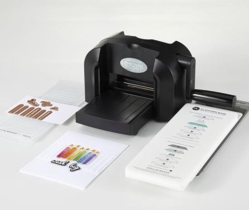 Simon Hurley Platinum Scout Die Cutting & Embossing Machine 3.5 Platform is a mini machine has maximum power in a compact size. The stunning black edition features an onyx color finish, smoky grey cutting plates, and a matching dies set & embossing folder. Crafted with precision and reliability in mind, this mini marvel has the same steel internal components of the full-size Spellbinders Platinum Machines. The Scout is condensed into a sleek and portable design, while still having the largest platform of any compact machine on the market. With a 3.5 x 9" platform and coordinating Universal Plate System, as well as fold down doors for increased stability, the Scout offers portability and versatility without sacrificing power. The Scout's compact size makes it ideal for crafting on the go. Take it with you to workshops, events, crafting parties, or simply craft in a cozy corner of your home. Don't let its small stature fool you this machine is a workhorse, capable of delivering crisp and precise cuts