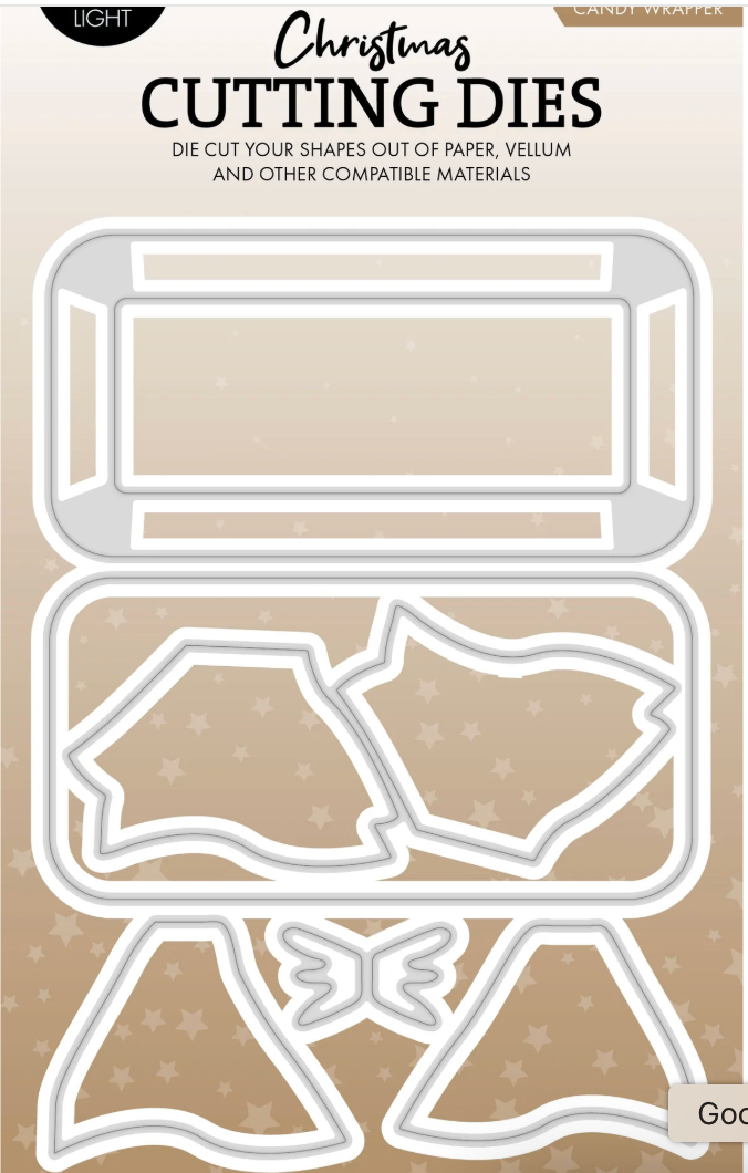 Create a decorative candy wrapper with this 6 piece die set. A great addition to your crafting stash and is perfect for Christmas and Birthdays.