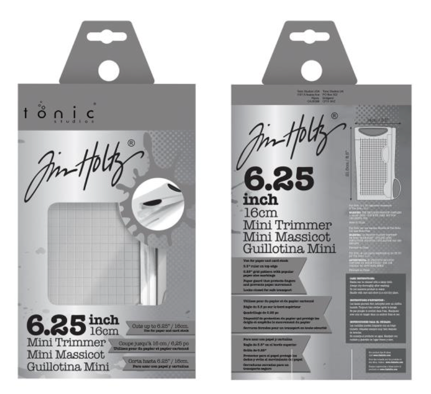 The Tim Holtz 6.25 inch / 16cm Mini Trimmer has many features not found in similar products. This product is portable and lightweight. It is perfect for trimming photographs and creating card fronts. Features include; Hardened steel precision ground blade, Molded in measuring grid, 6.25 inch / 16cm cutting blade length and Finger guard that holds your paper in position for the perfect cut. Imported.